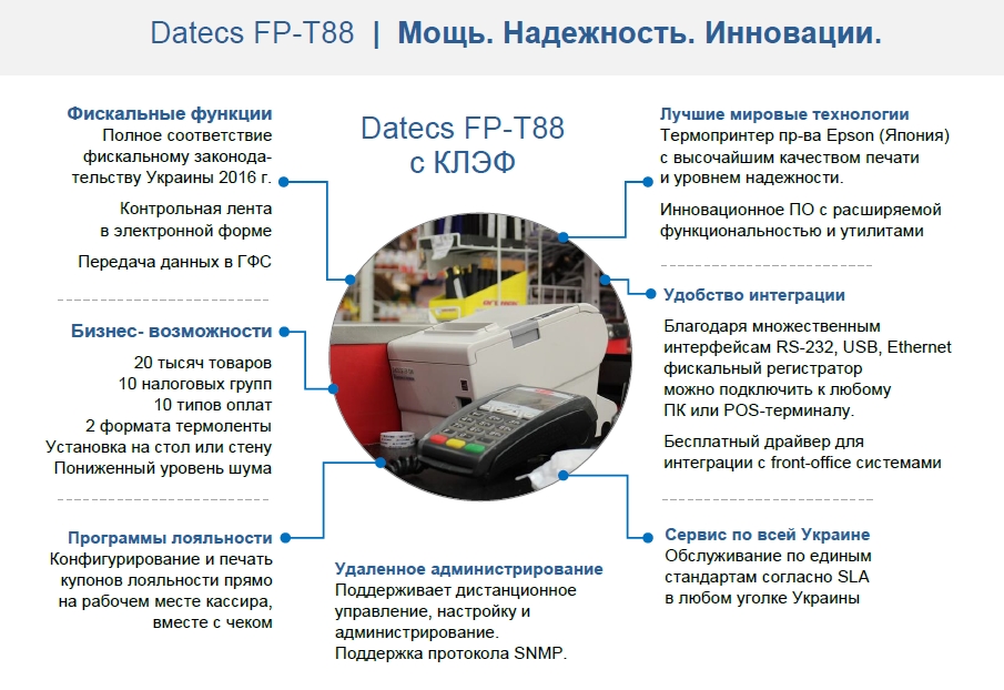 Ключевые преимуществ Datecs FP-Т88